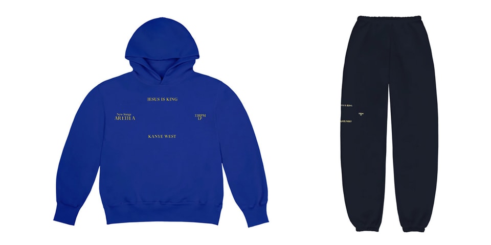 The new merch continues in using YEEZY cotton garments as the base for the various hooded sweatshirts, crewnecks, long sleeves, T-shirts, and hats. Each piece is offered up in either a black or royal blue base, featuring gold-hued typographic logos that read the album and Ye’s name, the record’s catalog number or “AR13331A,” as well as “33RPM LP.”