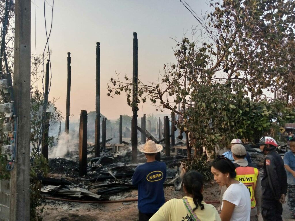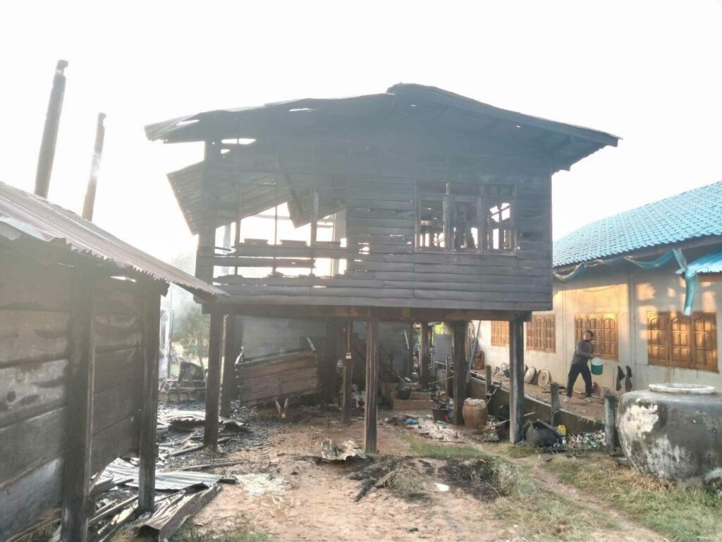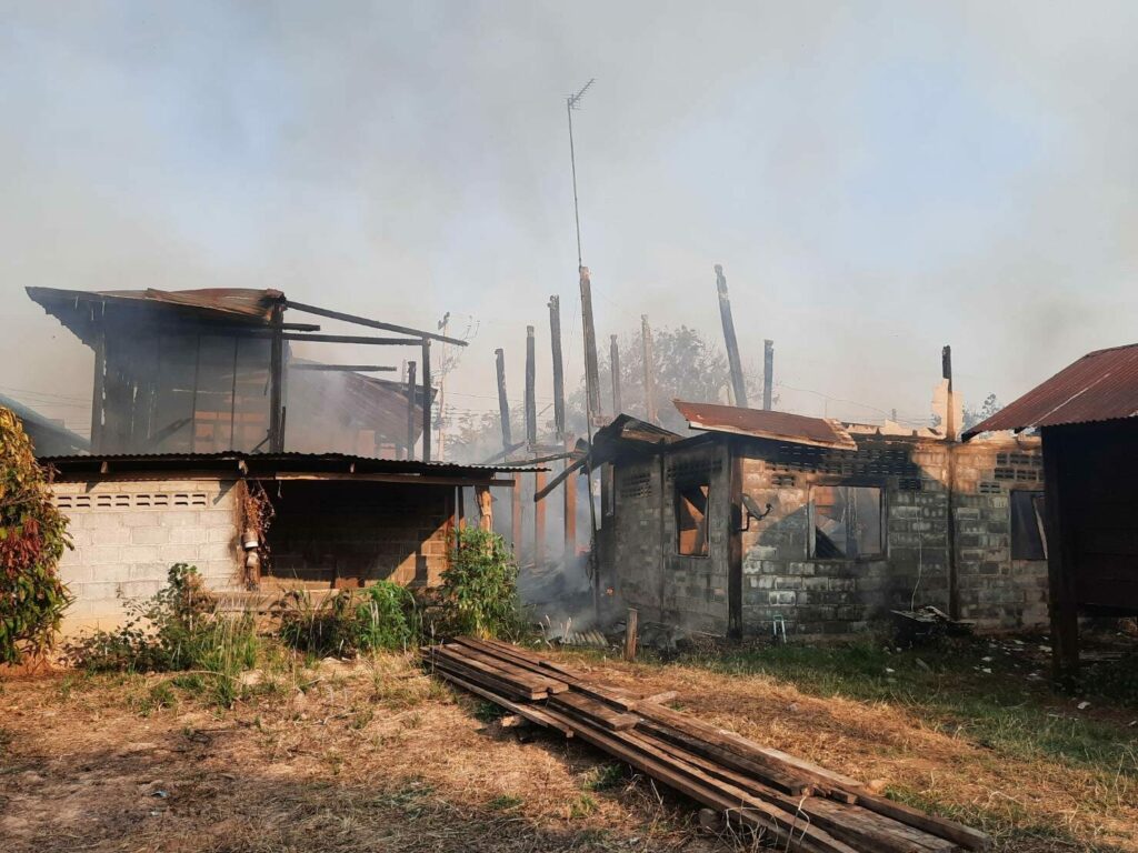 จากการตรวจสอบพบว่า ต้นเพลิงมาจากบ้านเลขที่ 9 ก่อนจะลุกลามไปยังบ้านข้างเคียงวอดเสียหายรวมทั้งหมด 6 หลัง เนื่องจากเป็นบ้านเครือญาติที่อยู่ติดกัน ทรัพย์สินภายในบ้านรวม ทั้งเครื่องใช้ต่างๆถูกไฟไหม้เสียหาย นอกจากนี้ยังมียุ้งฉาง ซึ่งข้างในมีข้าวเปลือกอยู่เต็มถูกไฟไหม้เสียหายอีก 2 หลัง ซึ่งอยู่ระหว่างการประเมินความเสียหาย แต่คาดว่าไม่น้อยกว่า 3 ล้านบาท