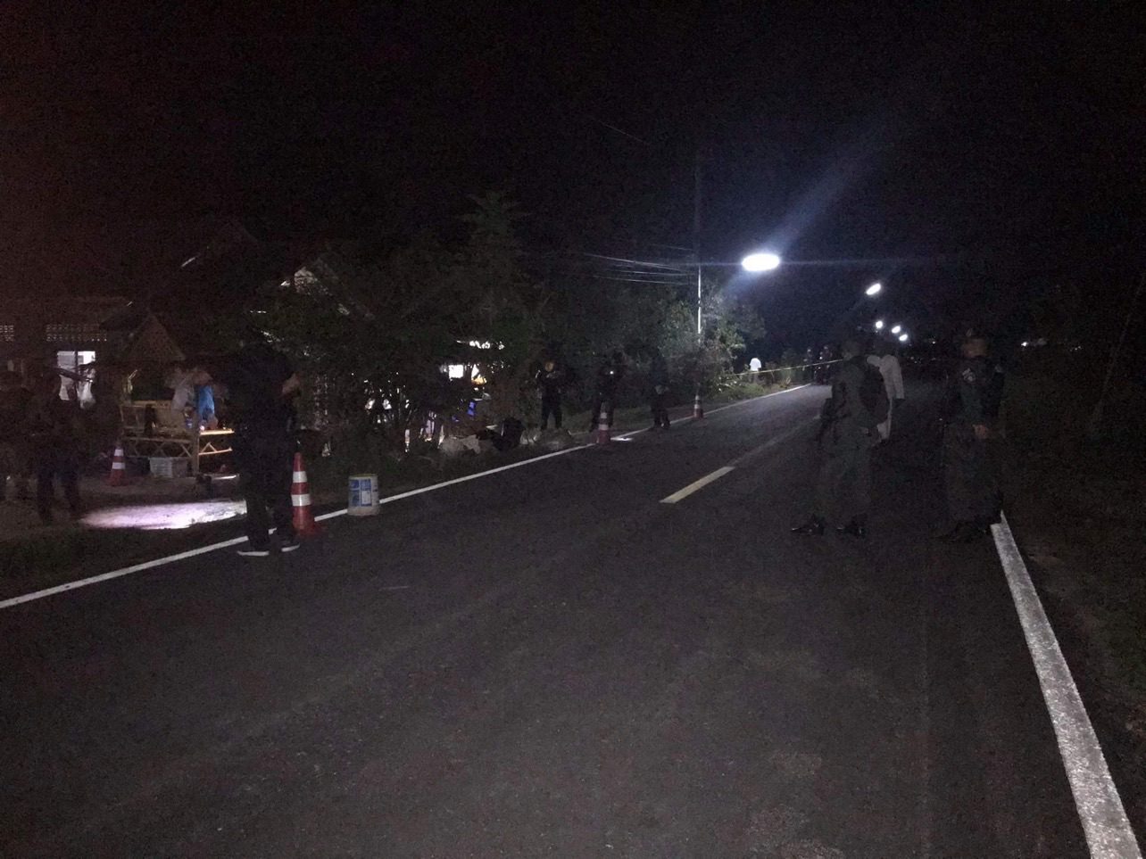 จากการตรวจสอบที่เกิดเหตุพบปลอกกระสุนปืนอาก้าตกเกลื่อนบนถนนกว่า 20 ปลอก เจ้าหน้าที่ได้เก็บไว้เป็นหลักฐาน