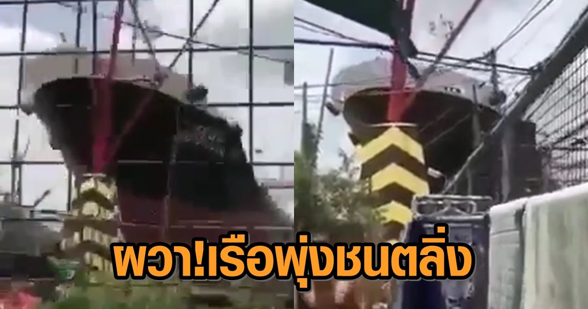 ผวา! ชาวบ้านเล่านาทีสุดระทึก เรือใหญ่พุ่งชนริมตลิ่ง หวิดเสยบ้าน ปชช.