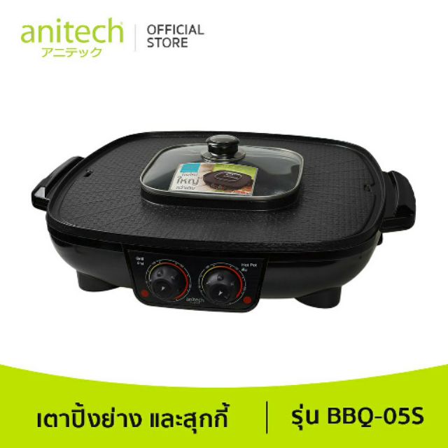 “Anitech” แบรนด์สินค้าอิเล็กทรอนิกส์ กับเตาปิ้งย่างและหม้อสุกี้ รุ่น BBQ-05S กำลังไฟฟ้า 2,200W แยกปุ่มปรับความร้อนระหว่างเตาปิ้งกับหม้อต้ม ขนาดกว้าง 42 เซนติเมตร และหม้อสุกี้จุน้ำซุปได้ถึง 2.2 ลิตร แถมรับประกันนนาน 2 ปี ราคา 1,590 บาท