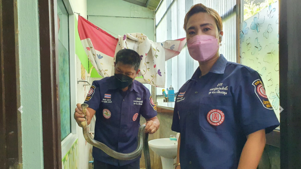 วันที่ 30 ต.ค. 2564 เจ้าหน้าที่ศูนย์วิทยุวัฒนะ (ป่อเต็กตึ๊ง) ได้รับแจ้งจากชาวบ้านว่า มีงูเห่าเลื้อยเข้ามาอยู่ในห้องน้ำ บ้านเลขที่ 99/352 หมู่บ้านอธิเชฐธานี ถนน 347 ม.3 ต.เชียงรากใหญ่ อ.สามโคก จ.ปทุมธานี จึงประสานอาสาสมัครมูลนิธิป่อเต็กตึ๊ง พร้อมอุปกรณ์เดินทางไปช่วยเหลือ
