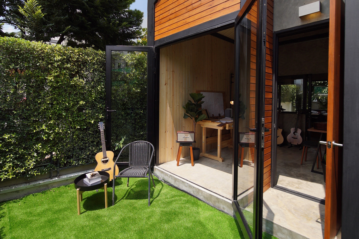 “โควิดปีนี้ผลกระทบหนักจริง ๆ บางครั้งเราท้อนะ ไม่รู้จะไปต่อยังไง มีอยู่วันหนึ่ง ผมมองออกไปตรงสนามข้างบ้าน และคิดเล่น ๆ ทำไมเราไม่ทำสตูดิโอที่บ้าน จากนั้นก็ลงมือทำทันที และคิดเดินหน้าไปต่อ ตามฝันที่ตั้งใจไว้”
