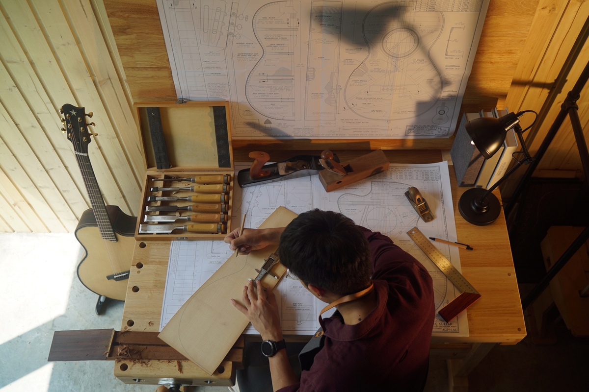 “เสน่ห์ของกีตาร์แฮนด์คราฟต์ เป็นเรื่องของแพสชั่นความหลงใหล ความชื่นชอบในงานไม้ เป็นอะไรที่แปลกประหลาดมาก เขามาเป็นแผ่นไม้แล้วเราก็ทำให้กลายเป็นเครื่องดนตรีได้ ผมไม่ใช่แค่รักกีตาร์ แต่ผมอยากสร้างเขาขึ้นมา ทุกครั้งเวลาที่ทำกีตาร์เสร็จ ผมรู้สึกว่านี่คือความสุขจริง ๆ” ไต้ฝุ่นบอกเล่าถึงความรักในงานคราฟต์ที่มีมานาน
