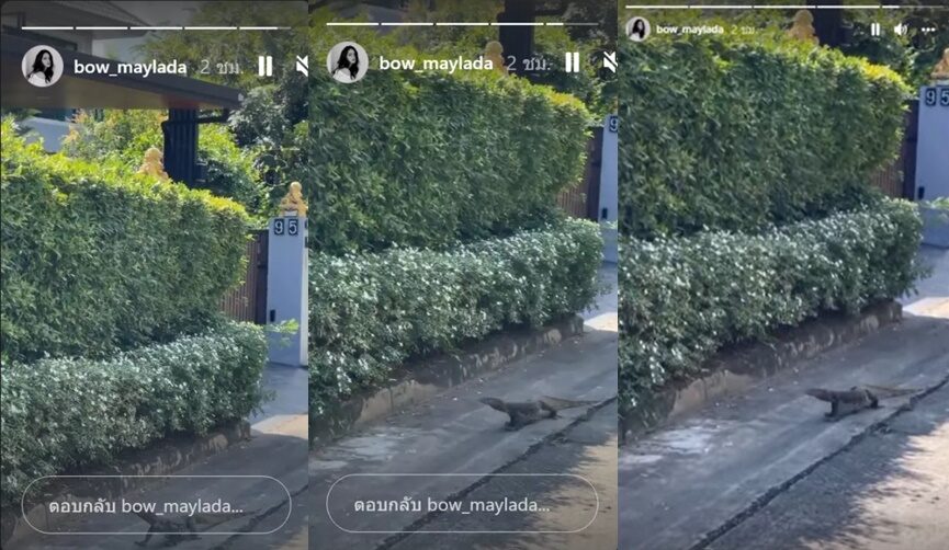 โดยสาวโบว์ถ่ายเจ้าตัวเงินตัวทองเดินชิลอยู่หน้าบ้าน พร้อมเผยเลขที่บ้าน งานนี้แฟนๆ ไม่พลาด แห่ส่องแห่ซูมเลขบ้าน 95
