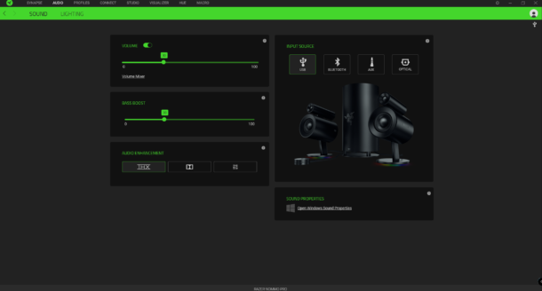 เมื่อเป็นอุปกรณ์ของ Razer ก็ต้องรองรับการใช้งานกับแอพพลิเคชั่นของทาง Razer ด้วยครับ ^^ RAZER NOMMO PRO รองรับการใช้งานกับโปรแกรม Razer Synapse เหมือนอุปกรณ์ของ Razer ตัวอื่นๆ ตัวโปรแกรมจะทำหน้าที่เป็นศูนย์กลางการตั้งค่า และยังใช้ในการกำหนดสีไฟและเอฟเฟ็กต์การแสดงไฟที่บริเวณขาตั้งของลำโพงเราด้วยครับ ปรับแต่งได้หลายล้านสี เปลี่ยนได้หลายรูปแบบการทำงานของแสงไฟ เปิดให้สลับสีกันไปมาเป็นแบบ Wave กระพริบเป็นลมหายใจ หรือสว่างขึ้นตามจังหวะเพลง ปรับตั้งได้ในโปรแกรมนี้ทั้งหมดครับ